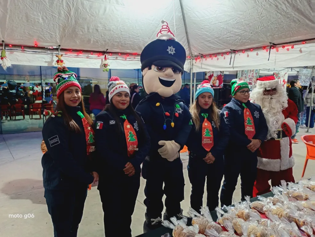 Elementos de Seguridad Pública Municipal participaron activamente, supervisando las actividades y contribuyendo al ambiente navideño mediante el reparto de dulces y pan entre los asistentes. No se registraron niños extraviados ni altercados durante la celebración.
