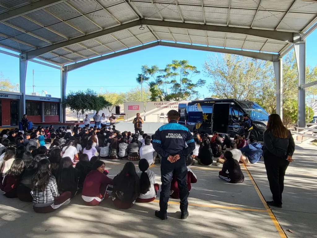 A través de la Jefatura de Proximidad Social, se impartieron sesiones informativas en la Escuela Secundaria General No. 4 “Guillermo R. Canseco Sada”, turno vespertino, así como en la Universidad Tecnológica de Ciudad Acuña (UTCA). Estas acciones forman parte de las estrategias permanentes para fortalecer la seguridad escolar y orientar a jóvenes sobre temas de riesgo.