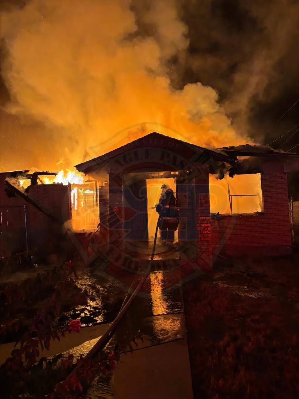 Eagle Pass, Texas.- Bomberos de Eagle Pass lucharon esta madrugada para sofocar el fuego que se registra en una casa del sector Siesta Acres.